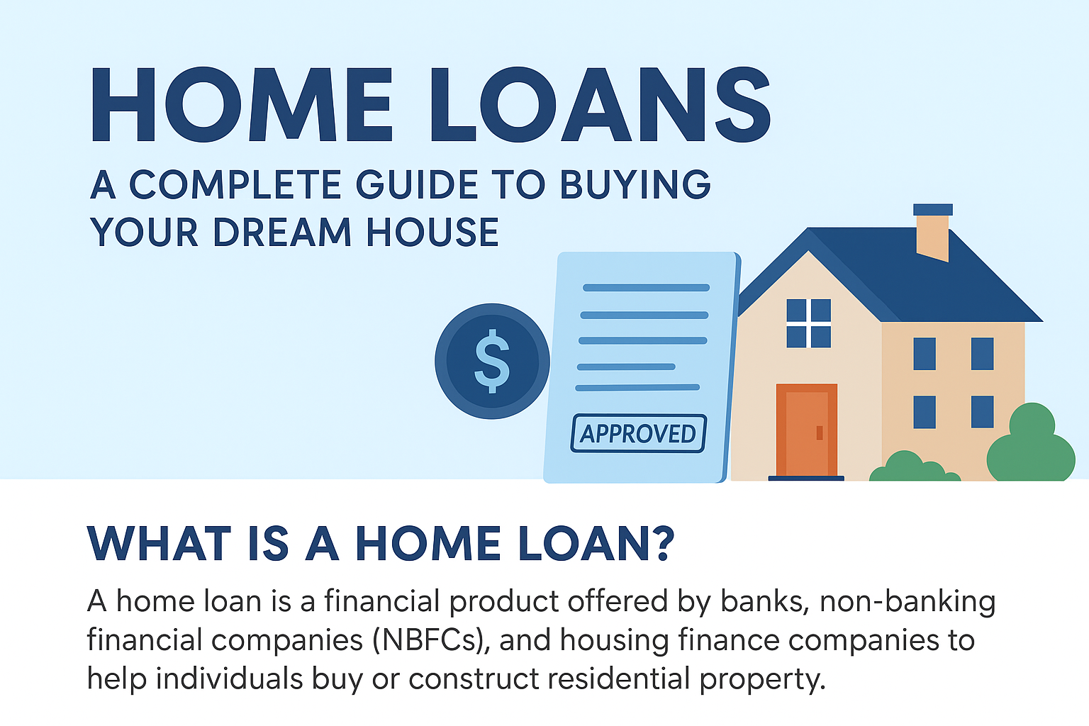 A home loan is a financial product offered by banks, non-banking financial companies (NBFCs), and housing finance companies to help individuals buy or construct residential property.